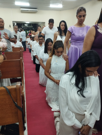 A celebração marcou a confirmação do Sacramento do Crisma de 24 jovens e adultos, que renovaram suas promessas batismais e receberam o Espírito Santo para fortalecer a sua caminhada cristã. Após o período de preparação, orientados pela catequese paroquial, os crismandos foram ungidos com o Santo Óleo do Crisma, sinal da graça de Deus em suas vidas.